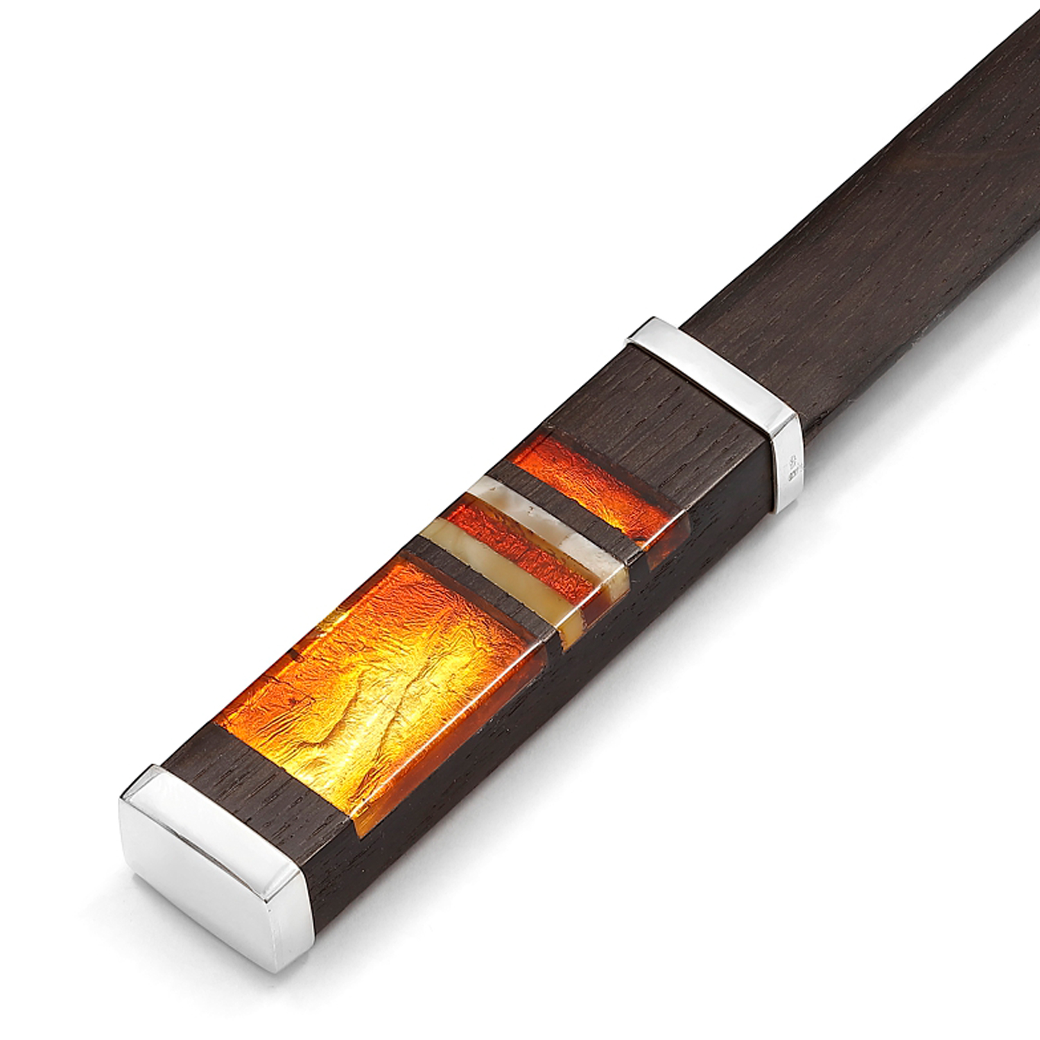 Nóż do papieru bursztyn czarny dąb srebro 5292