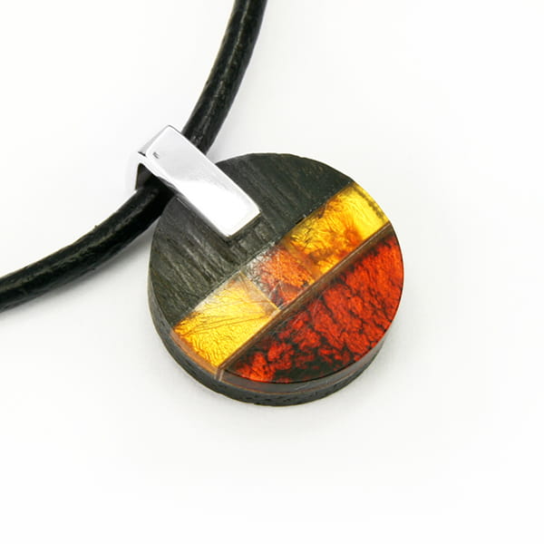 Wisiorek okrągły w srebrze z bursztynem i czarnym dębem 2420